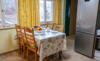 Cosy 3-family house "Blechnerhof", 1'000 m a.s.l.. Above Falkau, in a quiet, sunny position on a slope, 3 km from the lake, in a cul-de-sac. 100 m long bumpy, steep motor access. Shop 2 km, supermarket 4 km, bus stop "Altglashütten-Falkau" 1.5 km, railway station "Altglashütten-Falkau" 1.5 km, bathing lake "Windgfällweiher" 2.5 km. Minigolf, ski lift 2.5 km, cross country ski track, children's playground 500 m. Nearby attractions: Titisee 10 km, Feldbergipfel 12 km, Schluchsee 7 km. The owner does not accept any youth groups. Owner lives in separate semi-detached house. "Blechnerhof", 3-room apartment 75 m2, on the ground floor. Practical and cosy furnishings: living/dining room with 2 sleeping facilities, dining table and satellite TV. 1 room, ceiling height 190 - 200 cm with 1 french bed. 1 room with 1 double bed and hand-basin. Kitchen (4 hot plates, oven, dishwasher, toaster, kettle, microwave, electric coffee machine) with dining table. Shower/WC. Oil heating. Carpet. Patio. Terrace furniture. Beautiful panoramic view. Facilities: Internet (WiFi, free). Parking (1 car). Please note: non-smokers only. Maximum 3 pets/ dogs allowed. Smoke alarm.