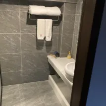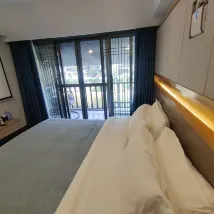 호텔은 환경이 아름다운 도시에 위치하고 있으며 발코니는 강을 바라보고 있어 전망이 좋고 옷을 말리기 쉽습니다. 방에 옷을 걸 수 있는 수납장이나 선반이 없는 점이 아쉽네요. 개선되었으면 좋겠습니다.