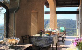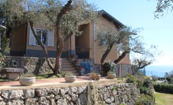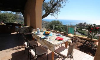 Single-family house "Sara". In the hamlet San Bernardino 3 km from the centre of Finale Ligure, in an elevated position on a slope, 3 km from the sea. Private: property 800 m2 (fenced) with lawn and trees. In the house: storage room for bicycles. Stepped path (20 steps) to the house. Public parking 50 m on the road. Shop 3 km, supermarket 3 km, restaurant 3 km, bus stop "32 Finale" 50 m, railway station "Finale Ligure" 3.5 km. Nearby attractions: Finalborgo 2 km, Pietra Ligure 10 km. Please note: car recommended. "Villa Sara", 4-room house 120 m2. Comfortable and cosy furnishings: large living/dining room with panoramic window with open-hearth fireplace, TV and radio. Exit to the terrace. 1 double bedroom. 1 small room with 1 x 2 bunk beds. 1 room with 1 bed and 1 double bed. Open kitchen (4 hot plates, oven, dishwasher, freezer, electric coffee machine). 2 showers/bidet/WC. Gas heating. Heating available only from 01.11. to 01.04. Terrace 25 m2 partly roofed. Terrace furniture, barbecue, deck chairs (5). Panoramic view of the sea. Facilities: washing machine, iron, mosquito net, hair dryer. Internet (WiFi, free). Parking at 20 m. Please note: maximum 2 pets/ dogs allowed. Smoke alarm, fire extinguisher. IT009029C278W5DETW