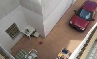 The driveway is a bit narrow. Smaller vehicles can easily drive in and park. Larger vehicles should be parked on the side of Via Lussu vis a vis.