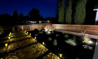 Adorable Luxury in Historic Downtown Folsom - Brand New Construction. Step into a peaceful and serene contemporary cottage in a spa like setting. Vaulted ceilings throughout, and a 10 ft high Rain Shower Head will ensure you never want to leave! Featuring a fully equipped kitchen, A/C, heat, wireless high speed WiFi, and two smart TVs.