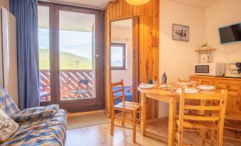 La Toussuire: Small residence "Les Mousquetons", 3 storeys. Above la Toussuire, in a quiet, sunny, elevated position, 500 m from the skiing area. In the complex: storage room for skis. In Winter: please take snow chains. Parking. Shop 350 m, grocery 200 m, restaurant, bar, bus stop 350 m, railway station "St Jean de Maurienne" 15 km. Chair lift 300 m, skisport facilities, slopes 500 m, ski bus stop 100 m. Please note: ski bus (free of charge). The keys‘ handover takes place by the agency INTERHOME DU CORBIER in LA STATION VOISINE, 4 km. Additional accommodations can be booked. The property comprises 3 adjacent buildings, connected by indoor corridors. NOTE: for the Toussuire apartments, the key collection will take place in the Interhome offices, 4 km away at Corbier. For those guests arriving by bus, please contact us 48 hours ahead, so as to organise the key collection. Additionnal service possible: 30€. 2-room apartment 25 m2 on 1st floor. Simple and practical furnishings: living/dining room with TV (flat screen). Exit to the balcony, north facing position. Entrance hall with 1 x 2 bunk beds (70 cm, length 190 cm). 1 room with sliding door with 1 french bed (140 cm, length 190 cm). Kitchenette (oven, 2 ceramic glass hob hotplates, kettle, microwave, electric coffee machine). Bathroom, sep. WC. Electric heating, boiler. Parquet floors. Balcony 3 m2, north facing position. Partial view of the mountains. Facilities: hair dryer. Internet (WiFi, extra). Please note: apartment carpark side. Non-smokers only. Maximum 1 pet/ dog allowed. Smoke alarm, no lift. Apartment in the building B. NOTE: for the Toussuire apartments, the key collection will take place in the Interhome office at Corbier, 4 km away. For the guests arriving by bus, please contact us 48 hrs in advance to arrange key collection. ADDITIONAL SERVICE FEE POSSIBLE 30 €. Offer by a private individual according to Art. 155, IV of CGI. 6820A