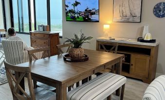 Great accommodations, all we expected and more!Beautiful view of the great beach and fabulous sunsets. Everything we needed for our stay plus extras. The decor is lovely with a nautical and beach theme.We had a few guests and everyone was very comfortable.Hope to return again!