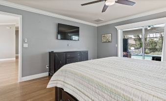 The home was recently renovated with many new updates/amenities including new furniture. Xfinity internet, and YouTube TV. Smart TV's to stream Netflix, Amazon Prime, Hulu, etc. The brand new saltwater pool/lanai was finished in March 2022. There is a pool child fence available if needed. A beautiful paver patio expands to a heated saltwater pool, which includes a sun deck and LED lighting. The pool has solar heat, with electrical backup, to maintain the perfect temperature year round. A large lanai encompasses the entire pool/porch area with patio furniture to enjoy the warm Florida weather! An outdoor TV is mounted, so everyone can enjoy the outdoors without missing their favorite sporting event or TV show. There is a pool volleyball net and basketball hoop to enjoy.