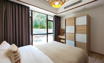 The villa is located within the beautiful Luhu Lake scenic area. The environment is beautiful, the air quality is good, and the villa has a swimming pool, a constant temperature bubble pool, a steam room, a KTV, barbecue, an automatic mahjong machine, and B0X games. Garden, french window