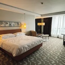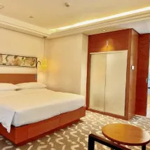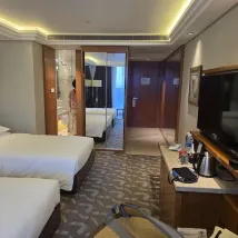 찬청에서 가장 높은 건물답게 호텔 로비는 1층에 있고, 객실 층까지 엘리베이터를 타려면 36층으로 가야 합니다(2개의 환승 엘리베이터 중 하나는 유지 관리 중이고, 운행 속도가 비교적 느려서 아쉽습니다). 조식은 특히 풍부하고, 중국 음식과 서양 음식이 모두 있으며, 서비스가 매우 사려 깊습니다. 체크인할 때 프런트 데스크에서도 업그레이드를 해 주었고, 전망이 정말 대단합니다! 전망이 매우 넓고, 객실이 넓고 욕조도 있습니다. 오래된 호텔이고 잘 관리되어 있습니다. 많은 외국인 친구들이 여기 머물고 있습니다. 수영장은 야외이지만 겨울에는 너무 추워서 이용하지 못했습니다. 헬스장은 수건과 식수가 잘 갖춰져 있습니다. 호텔의 위치도 매우 편리합니다. 조상 사원과 링난 티안디에서 불과 몇 백 미터 떨어져 있고, 포다에서 불과 1킬로미터 떨어져 있습니다. 이 가격으로 고전적인 럭셔리 5성급 호텔에 머물 가치가 있습니다!