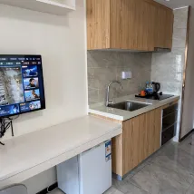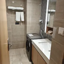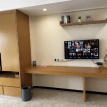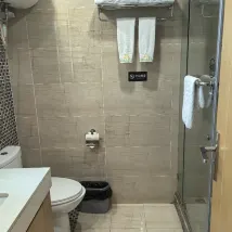 8月來佛山看演唱會,本來以為是承包了公寓樓的某些樓層做的公寓酒店,以為會不安全,但是感覺完全不會,大樓進門就是酒店大堂和前台,電梯上樓要刷房卡👍感覺還不錯 這個價格而言,衞生方面衹能説還行,還是會看到摸到灰塵,偶爾有頭髮 設施方面,沒有配備洗澡用的拖鞋;有張很矮的小茶几沒有正常桌子,吃飯有點艱難;洗手間很小但是房內其他空間倒是很大,而且所有開關都打開了也沒有找到排氣扇的開關,也沒有聽見抽風運作的聲音,我不理解 這個酒店是沒有配備送餐機器人,同時外賣員也不能上樓配送的,都衹能放在一樓大堂的外面,例如我住二十幾樓,每拿一次外賣就要走過很長的走廊下電梯到一樓取,真心累,而且外賣點設定在了室外,夏天天氣這麼熱的情況下食物真的很容易變質 總體來説,為了看個演唱會淺住一晚的話就還行吧