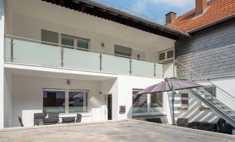 There is a parking space for bicycles. The apartment has a shared terrace where you can relax with a cold drink after a busy day in Frankenberg's old town or the surrounding area. Lounge furniture and seating groups offer enough space for large groups. A charcoal grill with accessories is also available.