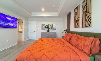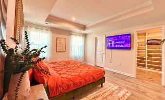 Ground or 1st Floor: A convenient bedroom featuring 50" in TV and a queen bed with easy access to the 2-car garage and main house entrance.
