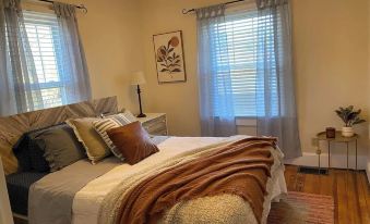 Our family fell in love with this cottage the moment we saw the front porch, which happens to be our favorite room. We took pride in the renovation projects with the property including restoring the hardwood floors in the bedrooms (under four layers of carpet and glued pads) and stripping multiple layers of paint from the mantle. We left the original oil pane windows intact in the living room and front bedroom. They add a historic feature and decorative aspect to the home. ** Please note, due to the steep incline of the street and the distance between the back driveway and side door, this property may not be suitable for individuals who require assistive devices for walking or have difficulty with balance. About pets:Pets allowed: dogs and cats less than 50 lbs per pet (limit 2 pets total).About checkOut:Check out before 11:00 AM.About children:Children allowed: ages 0-17.About checkIn:Check in after 3:00 PM.About smoking:Smoking allowed: in designated areas.About minBookingAge:Minimum age to rent: 22.About events:No events allowed.