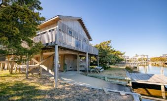 Comfortable & pet friendly waterfront beach box on Hatteras Island with its own private boat ramp/dock. Enjoy your morning coffee from the screened porch or your glass of wine while watching the sunset over the water. Bring your small boat/kayak/SUP and launch from the private ramp. Dogs will be safe in the fenced in side yard. Surf boards, beach toys, basketball court, corn-hole boards, dvd movies & internet all provided. Bring your fishing rods and cast right into the bay!