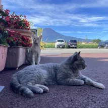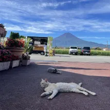 호텔은 가와구치코 외곽 지역에 위치해 있으며, 호텔 문 앞에서 바로 후지산을 볼 수 있고, 가와구치 호수까지는 걸어서 5분밖에 안 걸립니다. 5월 후지산 날씨는 비가 많은 편인데, 저희가 오후에 호텔에 도착했을 때는 날씨가 좋아서 가와구치 호수 변에서 후지산 반영을 볼 수 있었습니다. 호텔 사장님은 영어가 유창하시고 아주 친절하셨으며, 호텔 위생 상태는 말할 것도 없이 훌륭했습니다. 2층은 침실로 침대와 다다미가 모두 있었고, 1층은 일상생활 공간으로 되어 있었습니다. 호텔에는 고양이를 여러 마리 키우고 있어서 아이들이 아주 좋아했습니다. 아쉬운 점은 저녁 늦게까지 식사를 할 만한 곳이 근처에 없다는 것이었습니다. 놀랐던 점은 밤 9시 이후에도 Didi 앱으로 택시를 잡을 수 있었다는 것입니다. 이렇게 외진 곳에서 말이죠, 이 앱 정말 대단합니다!