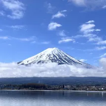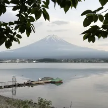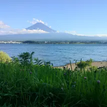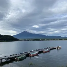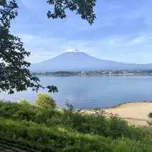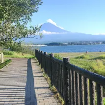 숙소에서도 후지산이 아주 선명하게 보이지만, 가와구치코 호수변으로 조금만 더 걸어가면 정말 멋진 인생샷을 건질 수 있습니다!