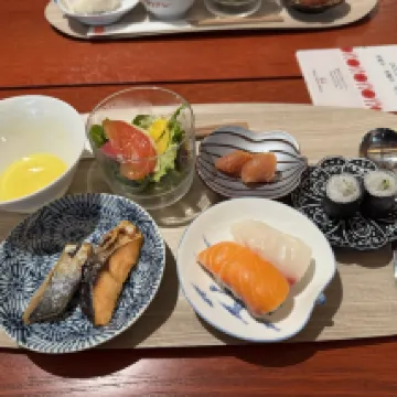또 조식이 맛있다길래 구매해서 먹었는데 종류도 많고 아침이지만 스시, 초밥, 라멘 등등이 있어서 엄마가 너무 좋아했어요 ㅎㅎ 물론 시리얼이나 빵, 밥, 생선구이 같은 요리도 있었습니다