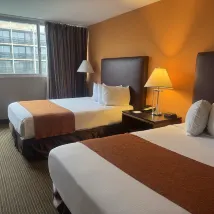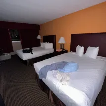 이 호텔이 다른 호텔보다 저렴하고 디즈니까지 무료셔틀이 있어서 2박을 예약했어요. 장비는 낡고 투박했고, 첫날 밤에는 엘리베이터 한 대가 고장나서 다른 엘리베이터도 앉기 위해 먼 길을 가야 했는데, 다음날 한 대만 고장나서 반나절을 기다려야 앉을 수 있었습니다. 다음날 밤 정전이 되었지만 아침 10시 30분까지 기다렸다가 전원을 다시 켜고 에어컨도, 온수 샤워도, 지원도 제공되지 않는 사소한 문제였습니다! 옆집 홀리데이 인이 정전이 되었는데도 사람들이 손전등 두 개를 빌려주고 컵라면을 끓일 수 있도록 뜨거운 물을 제공해 주네요! 무료 숙박의 또 다른 밤을 보내기 위해 성공적으로 싸운 후, 심지어 수영장 유지 보수까지 찾았습니다! 더워지면 물속에서 수영도 못해요! 무료 버스, 그리고 내가 역에서 기다리고 있는 것을 보았음에도 불구하고 180도 회전하여 떠날 수 있었고, 이로 인해 버스를 타고 호텔로 돌아갈 수 있었습니다. 다른 호텔보다 가격이 저렴하다는 것 외에는 이 호텔에 대해 제공할 만한 것이 별로 없습니다! 또한 이 호텔은 나에게 100달러의 보증금을 청구했는데 게시한 지 일주일이 넘도록 환불되지 않았습니다! 이전에 묵었던 샌프란시스코와 캐나다 호텔들은 그렇게 오랫동안 보증금 환불이 안 됐어요! 그의 프런트 데스크에서는 며칠 후에 퇴각할 것이라고 말했습니다!