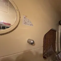 수납 공간은 괜찮은 편이지만, 침대 공간은 비교적 작고 정말 오래되었습니다. 라디오는 더 이상 작동하지 않고, 큰 TV에서는 10개의 채널을 볼 수 있습니다. 조명은 조절 가능하지만, 유일한 단점은 충전 포트가 하나뿐이라는 것입니다.