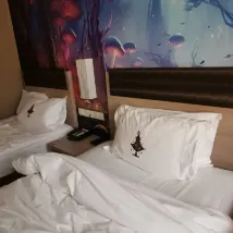 호텔 리뷰를 거의 쓰지 않지만, 이번 숙박에 대해서는 꼭 말씀드리고 싶습니다. 전반적으로 조금 실망스러웠습니다. 완다 리조트 호텔 중에서는 1. 위치: 리조트 끝자락에 있고, 큰길에 가깝고, 다른 호텔과 마주보고 있어서, 온갖 차량들이 몰려와서 밖이 좀 시끄러웠습니다. 직접 경험해 보시는 게 좋을 것 같습니다. 2. 객실: 해리포터 테마의 객실에 묵었지만, 기본적으로 배경 그림 같았습니다. 밤에는 어두컴컴한 조명과 어두운 배경이 어우러져 객실이 좀 우울하게 느껴졌습니다. 3. 객실 청결도는 더할 나위 없이 좋습니다. 호텔 자체가 꽤 오래되었고, 인테리어도 세월의 흔적을 여실히 드러냅니다. 라디에이터의 수건걸이는 먼지가 쌓여 있었고, 욕실 바닥에는 얼룩이 눈에 띄게 묻어 있었습니다. 4. 서비스: 프런트 데스크 직원들은 무뚝뚝하고, 전문성이 부족했으며, 서비스 정신도 부족했습니다. 더러운 옷을 담을 비닐봉지가 필요해서 프런트 데스크에 전화했는데, 정말 답답했습니다. 아이가 처음 전화했을 때는 로봇이 받았다고 했고, 비닐봉투는 없다고 했습니다. 두 번째 전화는 오랜만에 사람 상담원이 받아서 더러운 옷을 담을 비닐봉투가 있냐고 물었는데 없다고 했습니다. 그다음 쓰레기 봉투가 있냐고 물었더니 없다고 했습니다. 그 외에 다른 봉투는 무엇이 있냐고 물었더니 종이봉투가 있다고 했습니다. 무슨 질문을 하든 항상 그런 대답이었고, 손님 문제 해결을 돕는 서비스 의식이 개선되어야 합니다.