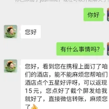 매우 열악하고 품질은 150 위안의 기차역 앞 호텔만큼 좋지 않습니다. 체크아웃 후 전화해서 긍정적인 리뷰를 요청했습니다. 긍정적인 리뷰 하나당 15위안 캐시백을 받았지만 거절했습니다. 서비스 태도는 매우 열악하며 기본적으로 서비스가 없는 것과 같습니다. 방에 들어가 자마자 곰팡이 냄새가 많이났습니다. 실제로 누군가가 호텔의 아침 식사가 훌륭하고 다양하고 간식이 많다고 말하면서 실제로 아침 식사가 불쌍했고 음료도 없었습니다. 뭔가 남은 것 같은 느낌이 들었어요. 15위안으로 밀크티 한 잔도 살 수 없습니다. 돈을 받고 양심 없이 좋은 평가를 하면 신용은 실제로 15위안밖에 되지 않습니다. 씨트립의 긍정적인 리뷰는 비판적으로 보아야 하며, 모든 리뷰를 믿지는 마세요. 다음 여행자에게 도움이 되길 바랍니다.