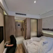 각 층마다 방은 많지만 엘리베이터가 많지 않습니다. 아침 식사 바는 평범하고 국수를 요리하는 사람은 매우 바쁩니다. 라오화, 삼겹살, 계란 후라이를 기다리는 데 여전히 시간이 오래 걸립니다. 위치는 말할 것도 없고 쓰리레인즈, 세븐앨리 바로 옆이라 바로 아래층으로 쇼핑가셔도 됩니다. 지하철과도 가까워서 이동에도 편리합니다. 한 가지 이상한 점은 저녁 시간에 테이크아웃 음식이 오랫동안 배달되지 않았다는 것입니다. 제가 직접 가져가려고 아래층으로 내려갔는데, 프론트 데스크에서 테이크아웃 아저씨에게 연락하라는 요청을 받은 것을 몰랐습니다. 그 결과, 그 작은 로봇이 엘리베이터에서 나왔는데요, 지금은 어디로 갔는지 모르겠습니다. 전반적으로 좋고 여행 및 생활에 적합합니다.