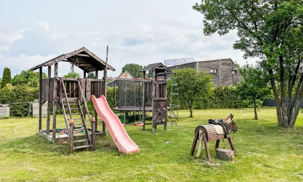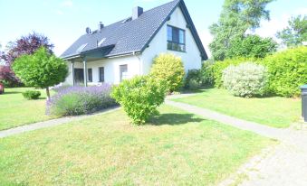 2-family house "Südwind". In the district of Gahlkow 2 km from the centre of Loissin, 4 km from the centre of Lubmin, 12 km from the centre of Greifswald, in the residential district, 1 km from the sea. For shared use: children's playground, parking on the premises. Supermarket 4 km, restaurant 1 km, bus stop "Lubmin Seebad" 5 km, sandy beach "Lubmin" 4 km, indoor swimming pool 12 km. Please note: the owner lives in the same residence. 2-room apartment 45 m2, on the ground floor. Beautiful and tasteful furnishings: living/sleeping room with 1 double sofabed, satellite TV and hi-fi system. Exit to the terrace. 1 room with 1 french bed (180 cm, length 200 cm). Kitchen (4 hot plates, oven, dishwasher, toaster, kettle, freezer, electric coffee machine) with dining table. Shower/WC. Gas heating, underfloor heating. Terrace 6 m2, lawn 40 m2. Terrace furniture, barbecue (portable). Facilities: children's high chair, baby cot for up to 2 year olds. Internet (WiFi, free). Please note: non-smokers only. Maximum 1 pet/ dog allowed. Smoke alarm. Terrace with fenced garden plot.