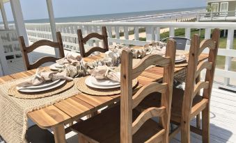 Salt Air Cottage offers plenty of options for the most essential reason guests visit: relaxation! Take in the ocean views from sprawling lounge chairs on the wraparound deck and enjoy water views from every room in the house. Outdoor dining options include patio seating and picnic tables. Be sure to make time for a short nap listening to the rush of the waves from the hammock!