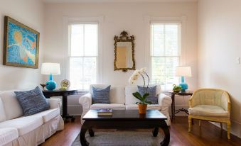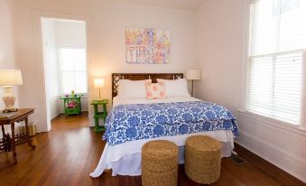 Olivette was built in 1886 and is a comfortable cottage that sleeps 5. While very historic, Olivette is a cute, bright, colorful home. It’s mid-town, just a short drive to the Strand or the beach. Or, you could just stay at Olivette - it’s the perfect oasis! There’s a front porch with rocking chairs, perfect for morning coffee or evening drinks. Our sparkling pool and patio are very private and cozy. We have high speed WiFi, satellite TV, and a fully equipped kitchen.About pets:Pets allowed: dogs and cats less than 50 lbs per pet (limit 2 pets total).About checkOut:Check out before 11:00 AM.About children:Children allowed: ages 0-17.About checkIn:Check in after 3:00 PM.About smoking:Smoking is not permitted.About minBookingAge:Minimum age to rent: 25.About events:No events allowed.