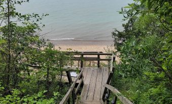 This little 3 bedroom cottage on .5 acre lot is a 5 minute walk to private access to Lake Michigan!