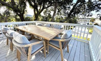 Ready for a late summer or Fall beach escape… Then look no further than Kailani House. Relax on the front or back porches overlooking the marsh for sunsets and to feel the breeze blowing off the Atlantic Ocean from the front OR walk out to the back deck and enjoy the marsh views, sit by the fire in our custom fire pit fit with adirondack chairs, slate gravel, and a smokeless fire pit, or if it's a bit too breezy, hop in the hot tub and enjoy the views from the back yard.