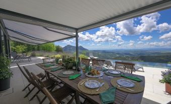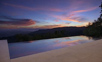 Children are welcome but parents should consider that they will need constant supervision in the garden, swimming pool and jacuzzi and that there are steep drops beyond the pool's infinity edge and overflow. The pool has a shallow end for less confident swimmers of 1.3m/4 ft and 1.8m/5'10" at the deep end.