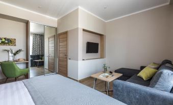 Отдыхали в отеле в сентябре 4 дня. Путешествуем часто, не только за пределами РФ, но и по России, отдыхаем в отелях разного уровня, есть с чем сравнить. Не пойму восторженных отзывов туристов! По порядку: заселили нас быстро, но очень разочаровал администратор сообщив нам, что зона барбекю в отеле платная: 2000 рублей (что нас очень удивило, так как выбирали отель специально с мангалом), так же нам сказали, что информация есть на сайте, по факту информация с сайта выглядит так: "К услугам гостей открытый бассейн с подогревом, в стоимость проживания включен континентальный завтрак, бесплатная парковка под видеонаблюдением, бесплатный WI-FI, терраса, зона барбекю". Может мы что-то не так понимаем, но странно очень, причем удивила данная услуга не только нас, но и других гостей отеля. Еще с администратором произошел один инцидент: при заселении нам сказали, что 2 бутылки воды в номере являются комплиментом от отеля, по факту нам пришлось оплатить 300 рублей, так как это не такой марки вода оказалась, которая идет комплиментом (ее забыли поставить в номер). Номера комфортные, большие, все чисто, все необходимое есть. Минус уборка и смена полотенец, только по запросу. Номер у нас был с отдельным входом сразу из зоны отдыха, где курилка для гостей, поэтому окна открывать было невозможно, так как запах попадал сразу в номер. Завтраки хорошие для отеля 3*, все вкусно. Бассейн теплый, небольшой, лежаков 3 пары, территории практически нет, до моря минут 20 пешком.
