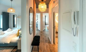 The high-quality accommodation has high ceilings and modern amenities. The bathroom is equipped with a shower and free toiletries. The apartment also offers a wide selection of coffee and tea. A free parking space in the adjacent underground car park is available around the clock. Self check-in is easy using a key box with a code, for flexible arrival and departure.