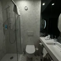정말 친절한 직원분들, 딸아이가 아파서 병원에 가야 할 곳을 알려달라고 부탁했을 때 친절하게 대해주셔서 정말 감사했습니다. 기차역 바로 옆에 있어서 편리했고, 부두까지 걸어서 금방 갈 수 있었습니다. 냉장고에 무료 초콜릿과 음료가 있어서 좋았습니다. 객실도 좋았고, 넓고 현대적인 화장실도 좋았습니다.