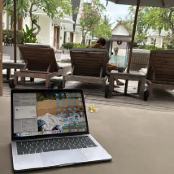 빌라는 페리 터미널에서 멀지 않은 곳에 위치해 있습니다. 도보로 약 10~15분 거리. 본관에서 빌라까지 걸어서 갈 수 있는 거리가 있기 때문에 호텔에서 충전 대신 무료 자전거 대여 서비스를 제공하면 좋을 것 같습니다.