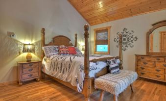Indulge in outdoor living at its finest on our two inviting patios, adorned with charming string lights. Savor your morning coffee, basking in the scenic beauty, or gather around the fire pit under the starlit sky for unforgettable conversations and marshmallow toasting. Take a dip in the community swimming pool walking distance from your stay. . When it's time to recharge, retire to the well-appointed bedrooms, each offering comfort, privacy, and with a private master en-suite bathroom and jacuzzi it’s a perfect end to an evening.