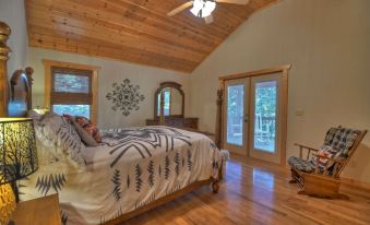 Escape to a picturesque retreat nestled in the heart of Ellijay, Georgia & the Blue Ridge Mountains. Welcome to our recently remodeled 4-bedroom, 4-bathroom cabin, where modern comfort harmonizes with rustic charm. As you step inside, be greeted by cathedral ceilings and hardwood floors that lead you into a spacious living area boasting panoramic forest views. Feel the stress melt away as you cozy up by the stacked stone fireplace or engage in friendly competition in the game room with a dartboard and a selection of board games. For the nature enthusiasts, direct river access awaits, inviting you to embark on water adventures or simply unwind by the tranquil riverside.