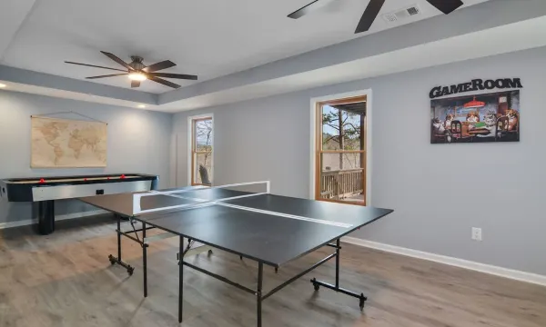 Game Room: Air hockey table ping pong table, board games, entertainment space, wet bar, and additional full bathroom