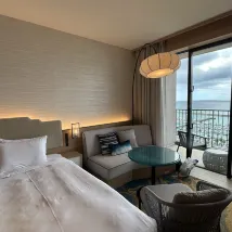 이 호텔을 선택한 주된 이유는 기노완 해양 낚시터와 가까워 바다 낚시를 즐기기 좋았고, 바로 옆에 큰 쇼핑몰이 있어 드러그스토어 제품과 생필품을 한 번에 구매할 수 있었다는 점이었습니다. 주변에는 많은 카페와 편의점이 있었고, 야키니쿠, 훠궈, 카레 등 다양한 먹거리가 완비되어 있었으며, 나하 공항으로 바로 가는 버스도 있었습니다. 호텔에는 인피니티 풀과 온천이 있었고, 객실 또한 매우 넓고 쾌적했습니다. 모든 객실이 오션뷰였으며, 발코니에서 맥주를 마시며 아름다운 석양을 감상했던 것은 이번 여행에서 가장 잊을 수 없는 추억입니다. 바쁜 일정 속에서 이곳에서 이틀 정도 휴가를 보내며 쉬어가기에 정말 안성맞춤이었습니다.