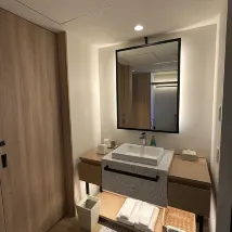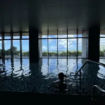 2층 야외 인피니티 풀과 실내 수영장, 온천 시설 모두 매우 좋았습니다. 아이들과 함께 하루 종일 야외 활동을 한 후 저녁에 온천욕을 즐기니 온몸의 피로가 싹 풀리고 정말 편안했습니다. 아이와 함께 묵을 수 있는 트리플 베드룸은 3층과 4층에만 있으며, 고층 객실에는 트리플 베드가 없다고 했습니다. 객실 내 욕실은 매우 넓어서 아주 만족스러웠습니다! 호텔 바로 옆에 대형 쇼핑몰과 마트가 있어 어린아이와 함께하기에 매우 편리했습니다. 바로 옆 안안 바비큐는 가격도 매우 좋았습니다!