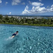 청결하고 시설이 신식이며, 주변 분위기도 좋았습니다. 직원분들도 친절했고, 프런트 데스크 직원분들의 영어 소통도 원활했습니다. 가장 중요한 점은, 8월 중하순부터 시작되는 극성수기에도 오키나와의 거의 모든 1,700~1,800위안대 호텔들이 3,000위안 이상으로 가격을 대폭 올렸는데, 프린스 호텔만은 가격 변동이 거의 없었다는 것입니다!! 정말 최고였어요!! 조식은 제 입맛에는 별로였지만, 남편은 괜찮다고 했습니다. 호텔에 전용 해변은 없었고, 트로피컬 비치까지는 걸어서 10분 정도 걸려 조금 멀게 느껴졌습니다. 저희가 머문 이틀 밤 동안 날씨가 너무 좋지 않아 인피니티 풀을 이용해보지 못한 점은 좀 아쉬웠습니다. 전반적으로 아주 만족스러운 호텔이었습니다.