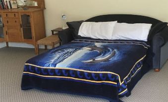 The apartment is set in north facing private grounds with access to open areas and the Waimata river. Walking to a shopping area is 5 minutes and to the city 15, otherwise a short drive or cycle. The living room is spacious and incorporates a cooking area and a bed settee (if required). The cooking area while not a full kitchen is designed and enables a full range of hot meals to be prepared (double hotplate, crockpots, microwave, fridge etc. ) and eaten (plates, cutlery etc.) The apartment is best suited to a couple as there is one double bedroom but there is capacity to accommodate up to two couples or 3 single guests with a double bed settee and a single fold down bed in the lounge. When booking can you please indicate if you need the extra beds made up. The bathroom and bedroom are separate from the living area. The floor area of the apartment is 66 m sq.