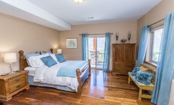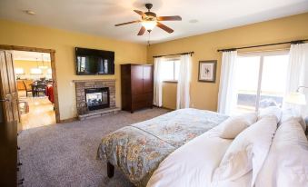 The master suite (upstairs) has a king size bed, full spa like bathroom including bidet, private deck which boasts beautiful views, a relaxing fireplace and a 55" flat screen TV.