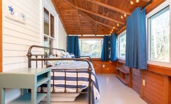 → 3 season sunroom porch with daybed closes off for an additional private sleeping space