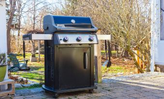 → Outdoor shower and grill perfect for warmer days spent in the yard
