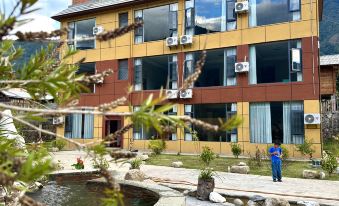 房間很大,乾淨衞生,老闆是藏族人,很熱情,賓館大廳也是藏族佈置,自己的院子能停車,就是開上大坡需要技術,院子裏有亭子可以喝茶,還有水管可以自己洗車。