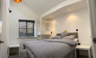 This is a modern 1 bedroom apartment with all modern facilities. The property is on the first floor entered by a communal stairs and landing. Once in your property there is a hall with a linen closet with spare bedding, duvet and pillows for the sofa bed (for your guests) and coat hook. To the right you will find the kitchen/ dinner and living room. The kitchen is fully equipped and includes all cooking facilities and equipment to include, washing machine and large fridge freezer. The lounge is equipped with all furnishing to be comfortable and homely with smart TV and network points for any devices you may have. The whole property is heated through underfloor heating via air source heat pump and each room has its own control to set the temperatures individually through the apartment. It has a very light and spacious feel thanks to high vaulted ceilings with velux windows in the lounge kitchen and bedroom.