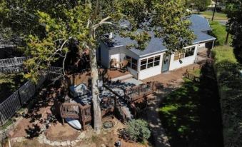 In addition to 2 bedrooms and 2 full bathrooms, you’ll have a wonderful sunroom with a queen-size Murphy bed and a detached bunkhouse with 2 sets of twin bunk beds. There is a pack ’n play available in the guest room closet with an extra mattress. The house comfortably sleeps 6 and the bunkhouse can sleep four. The listing shows maximum of 8 guests, but it can sleep 10. Please message me prior to booking if you have more than 8. The number of guests must be registered when booking. Each overnight guest over 6 people will have a $10/night additional charge. If there are any day guests, please let me know. The kitchen features all stainless steel appliances and a farmhouse sink; fully stocked with cookware and utensils. The sitting room off the kitchen provides a fireplace, and the living room contains a large sectional sofa and smart TV allowing guests to stream from their own accounts. All 4 TVs also have local channels. Feel free to enjoy the variety of board games available.