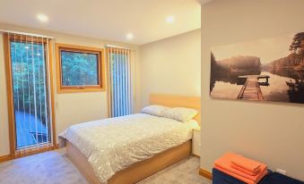 The house is well equipped, nestled in the woods, a 5 minute walk from the beach. It had everything for a holiday week, a great deck to hang out on, a fire pit with a good wood supply and comfy Muskoka chairs, cosy indoor space for rainy days. We had a splendid week, and can only recommend this rental to families looking for a summer getaway.