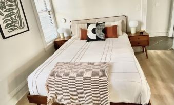 Enjoy a large open floor plan with tons of natural light and relax in the 1 bedroom with queen bed , large living area, private office, gourmet kitchen with large island, full bathroom, laundry room, private patio, quiet back yard and sitting porch.