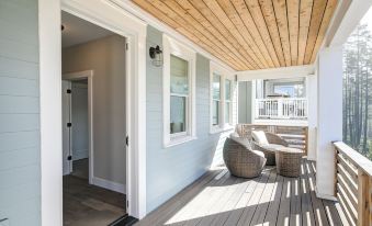 Situated on the top floor, the living room boasts comfortable seating, natural light, and stunning ocean views. Sink into the sectional and stream your favorite shows on the state-of-the-art theater system, featuring a Samsung 55" Ultra Premium Neo QLED 4K TV and Dolby Atmos soundbar for an incredible viewing experience. The TV can even be swiveled to be viewed from the kitchen or the deck.