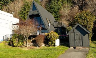 Book a relaxing getaway in this beautifully designed & furnished A-frame! Mins away from Meerkerk Garden and the beach! You can enjoy stunning sunsets & Olympic Mountain views on the oversized deck! We have a dining set on the front deck, and lounge chairs around the fire pit in the side yard where you can sit around under the dark nights! Perfect for generational trips, groups of friends & families! As an added bonus, two public beach accesses from Salmon Street, just a block away!